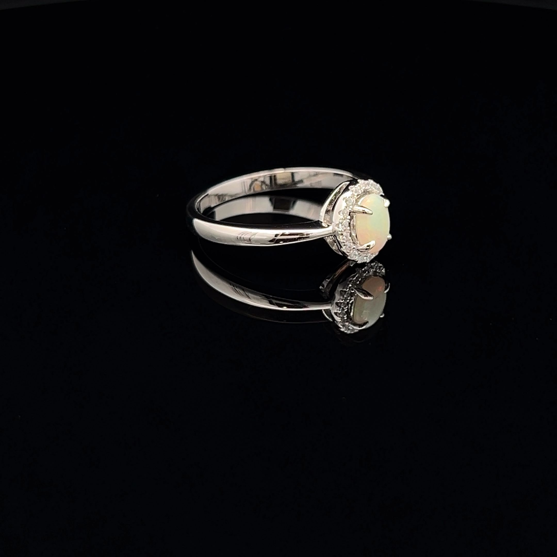 Solid South Australian Light Opal & Cubic Zirconia Ring Set in Sterling Silver
