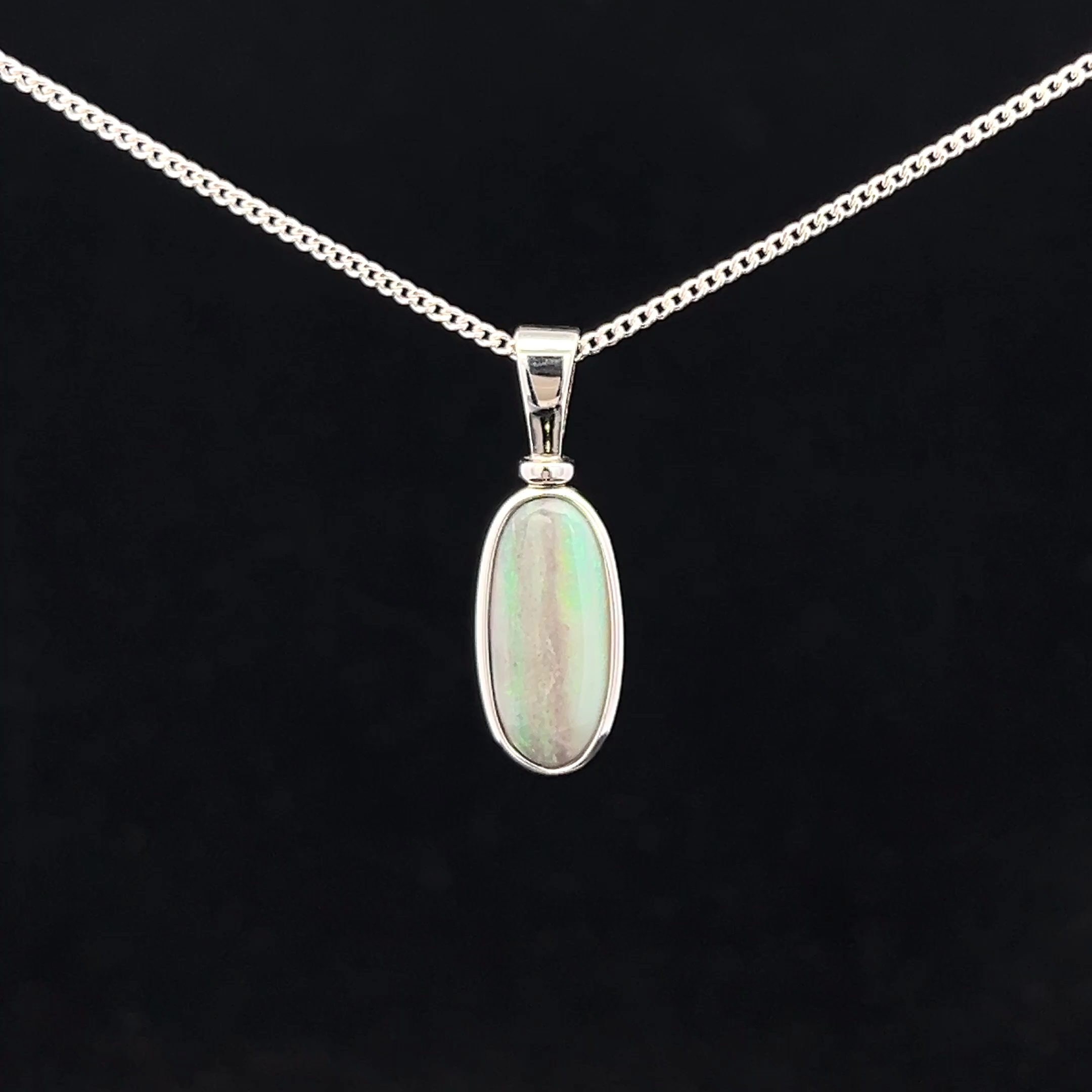 Sterling Silver Solid Light Opal Pendant 132363