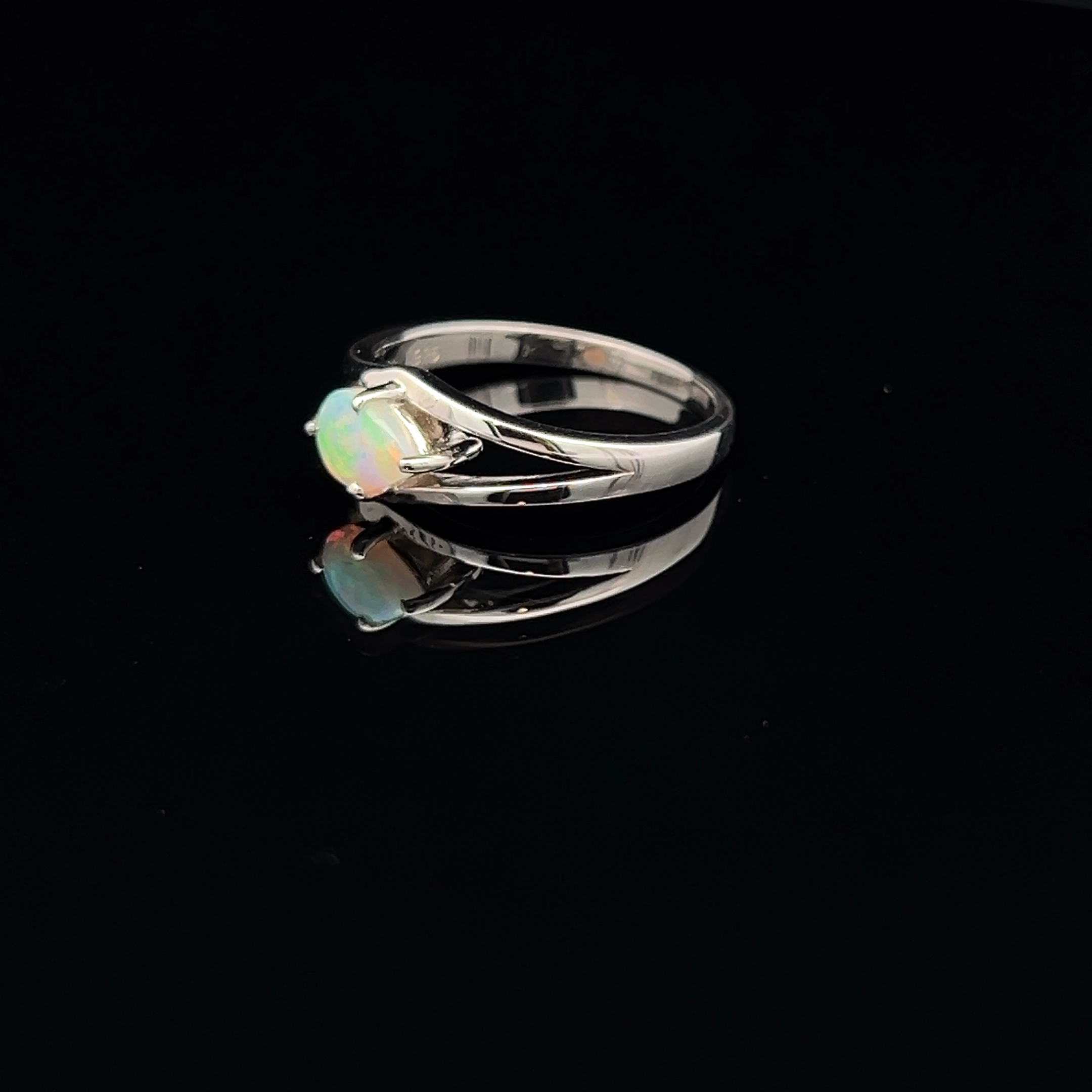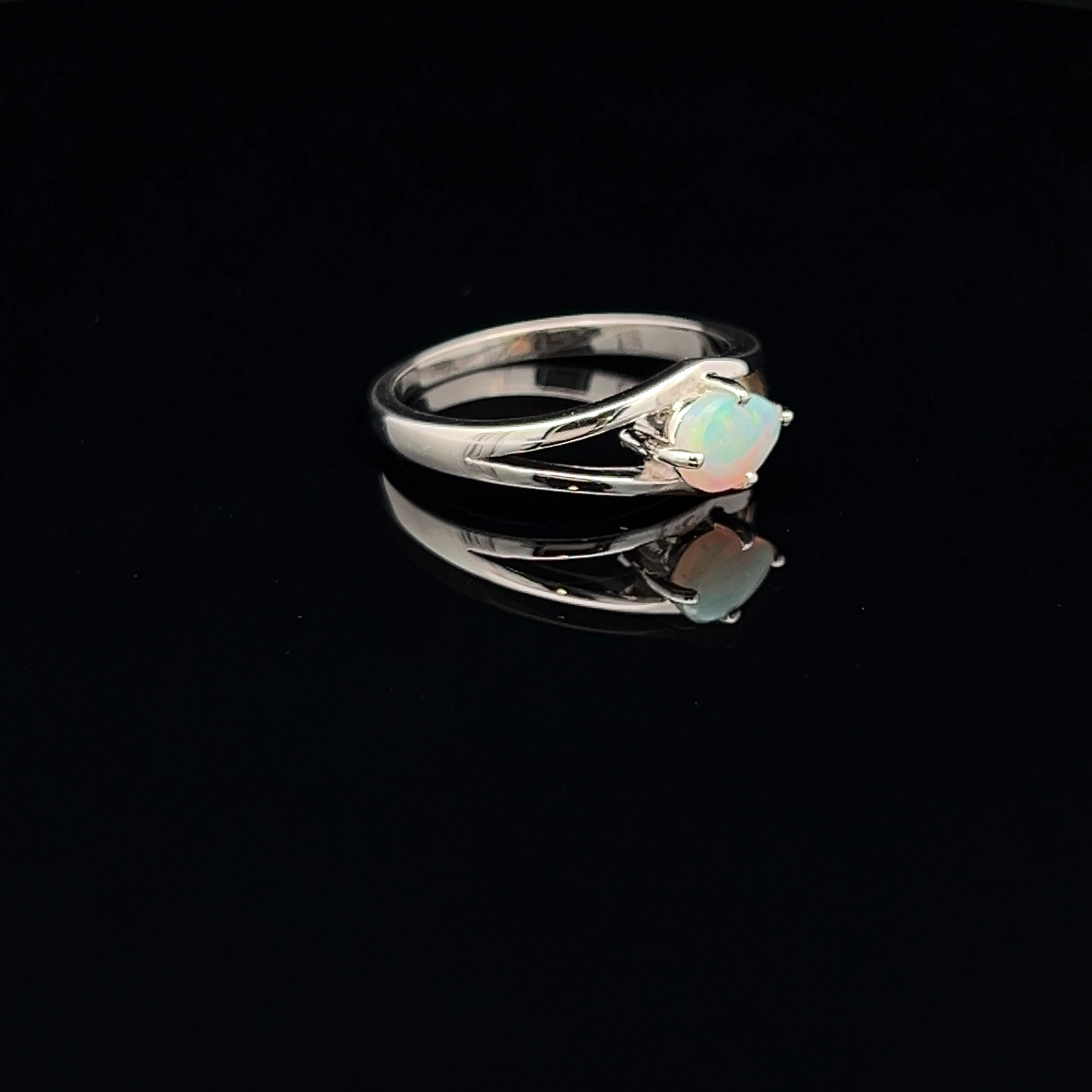 Solid South Australian Crystal Opal Ring Set in Sterling Silver Split Band