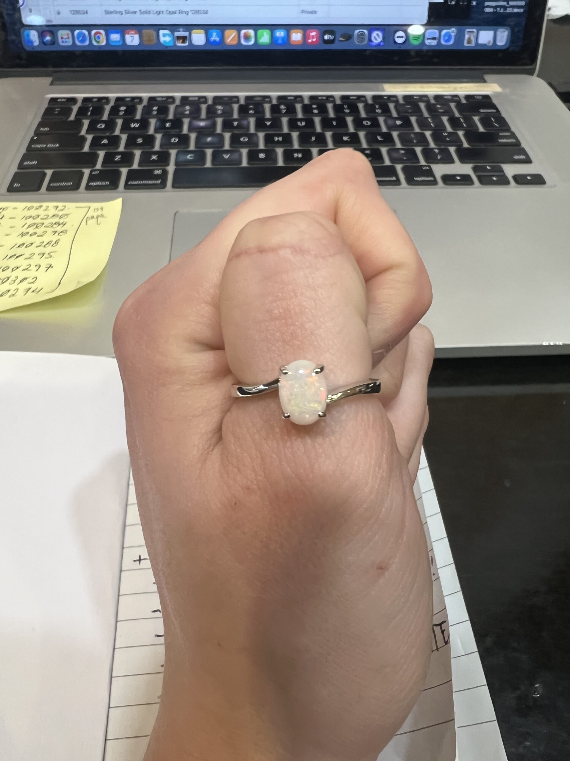 Sterling Silver Solid Light Opal Ring 128593