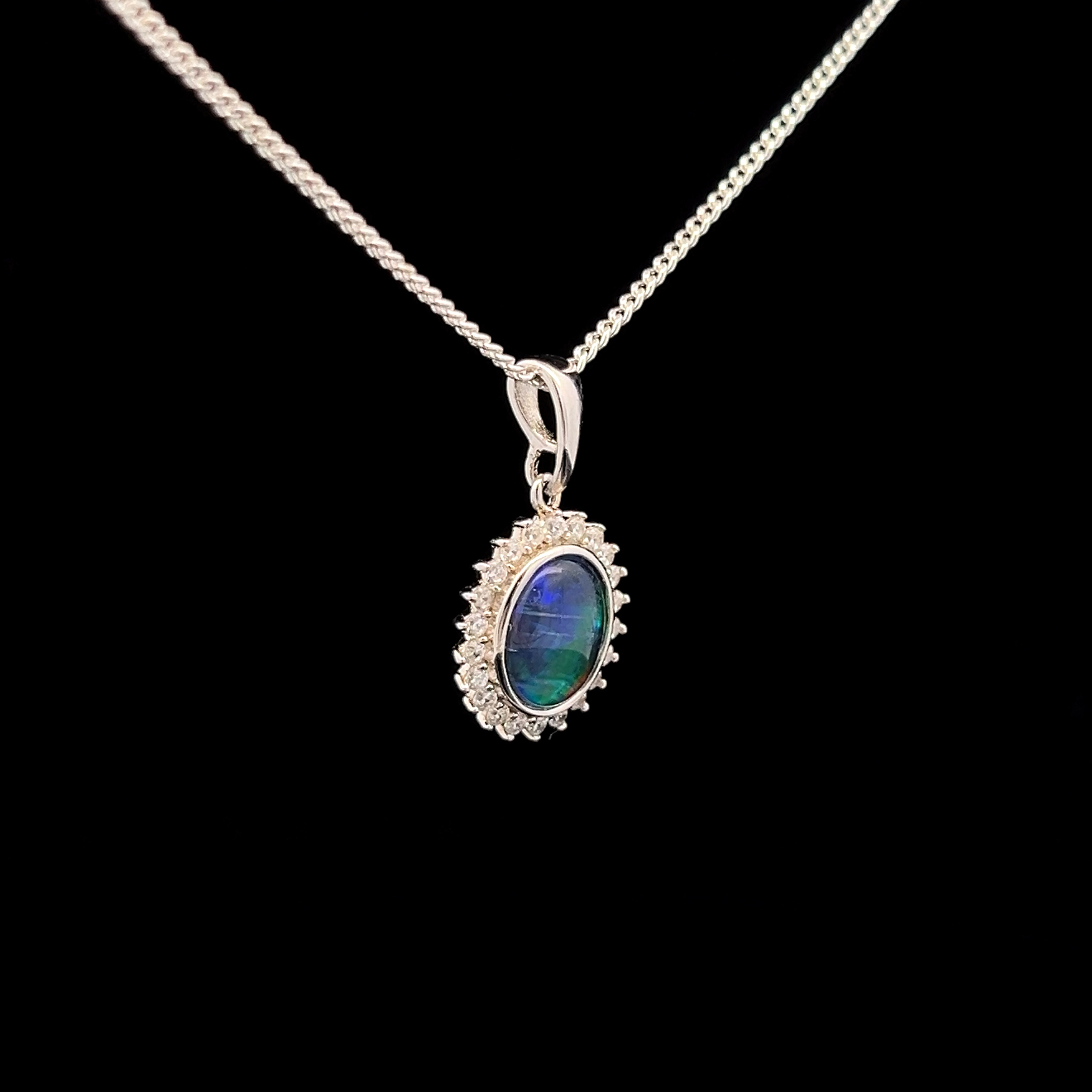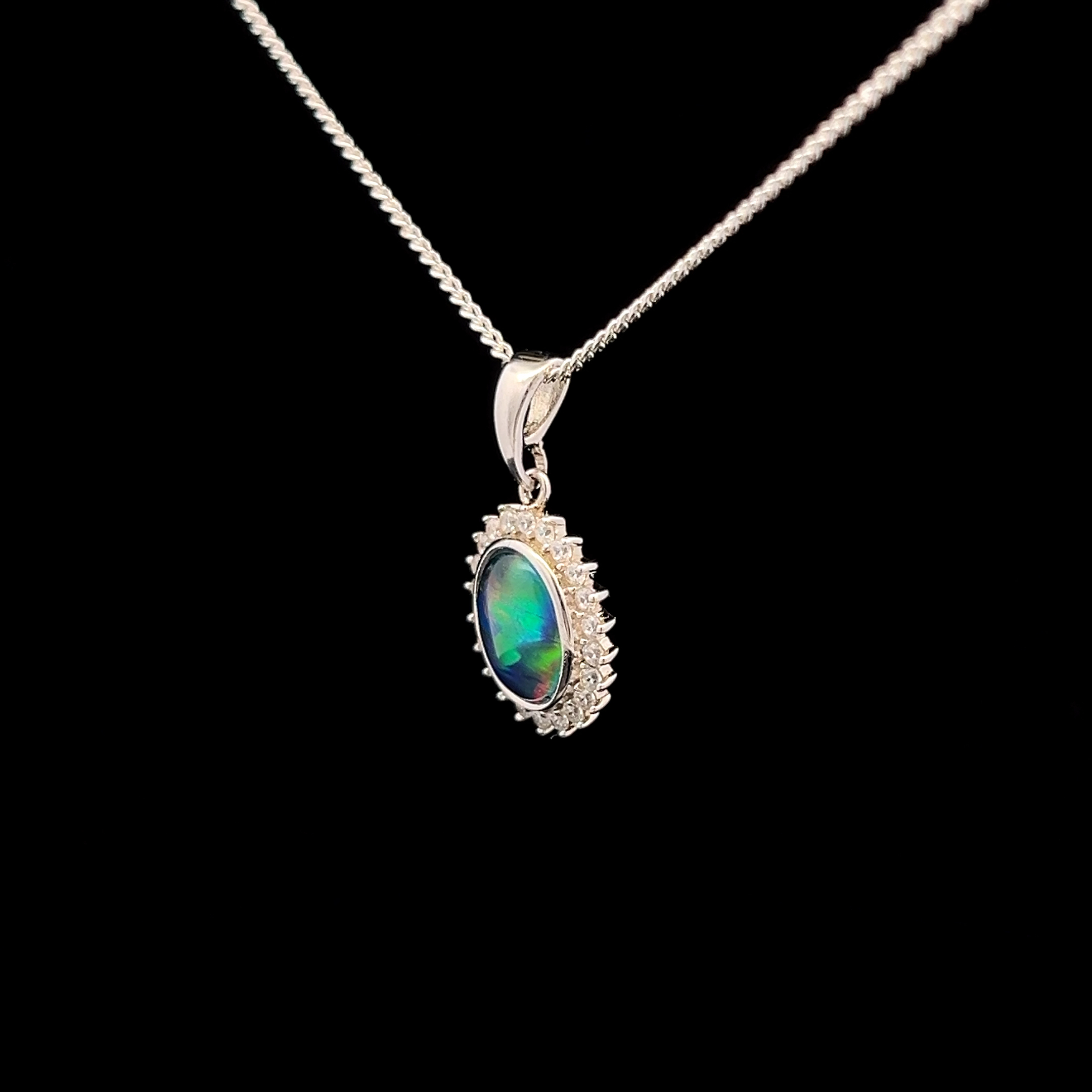 Sterling Silver Triplet Opal Pendant with Cubic Zirconias 135291