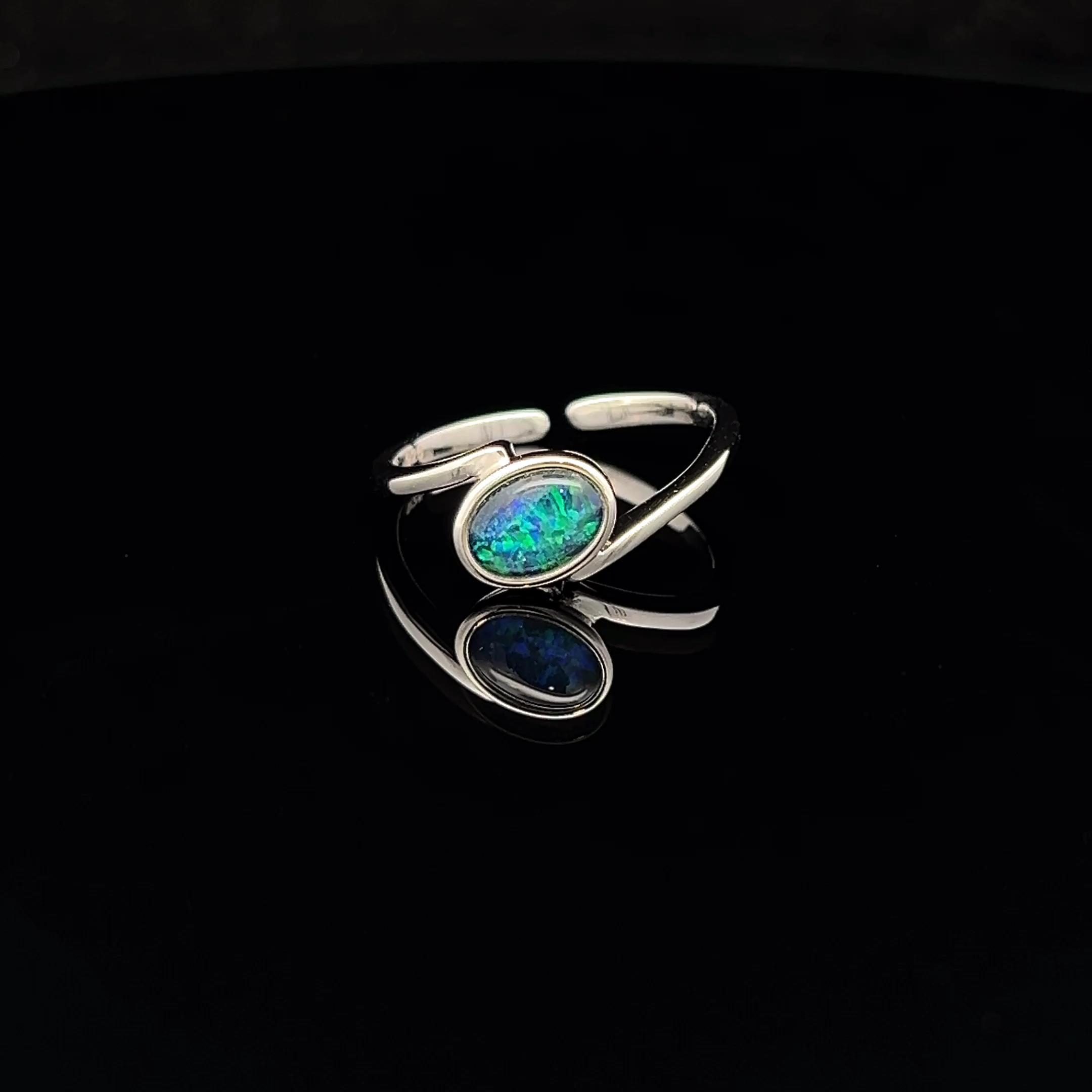 Sterling Silver Australian Gem Quality Triplet Opal Ring with Split Band