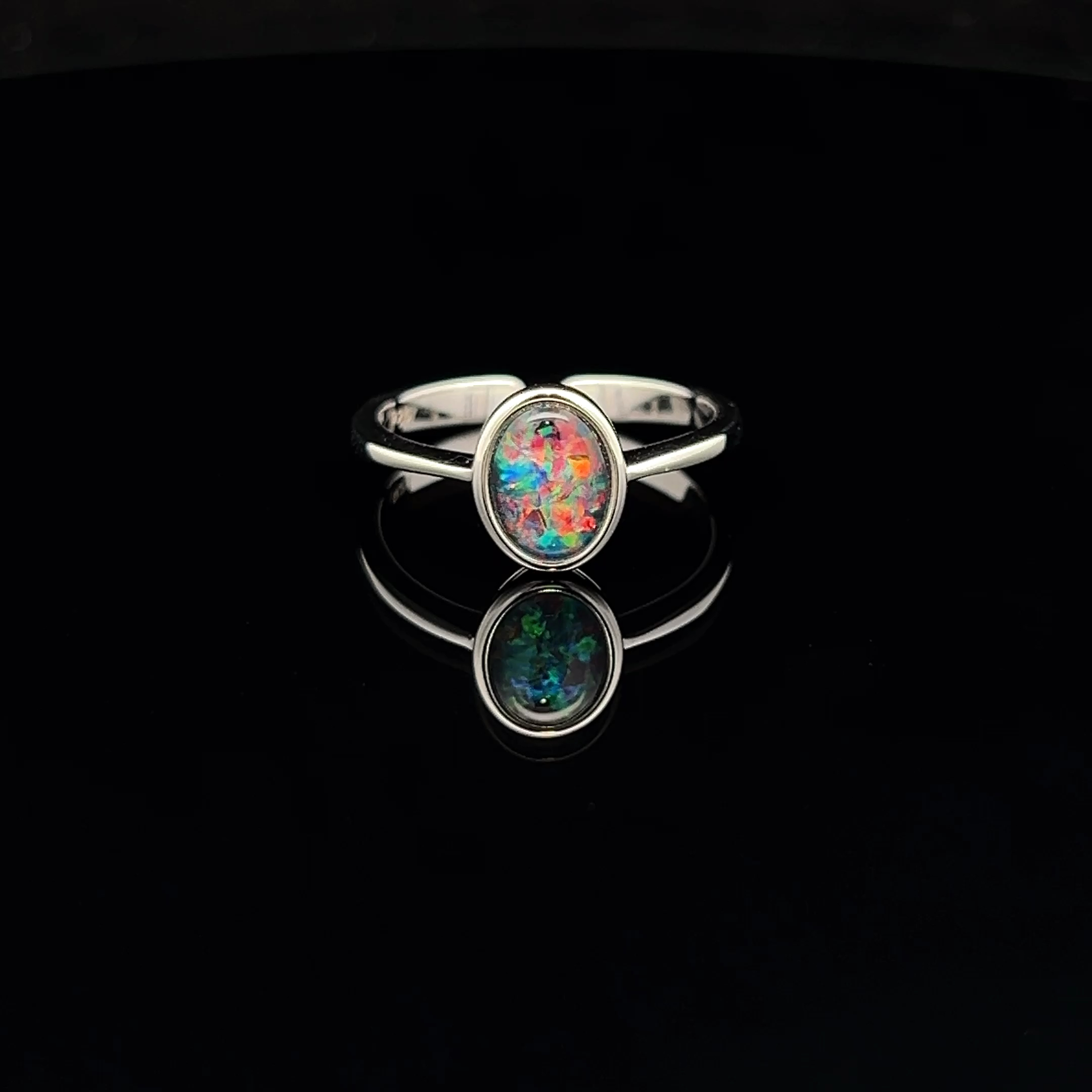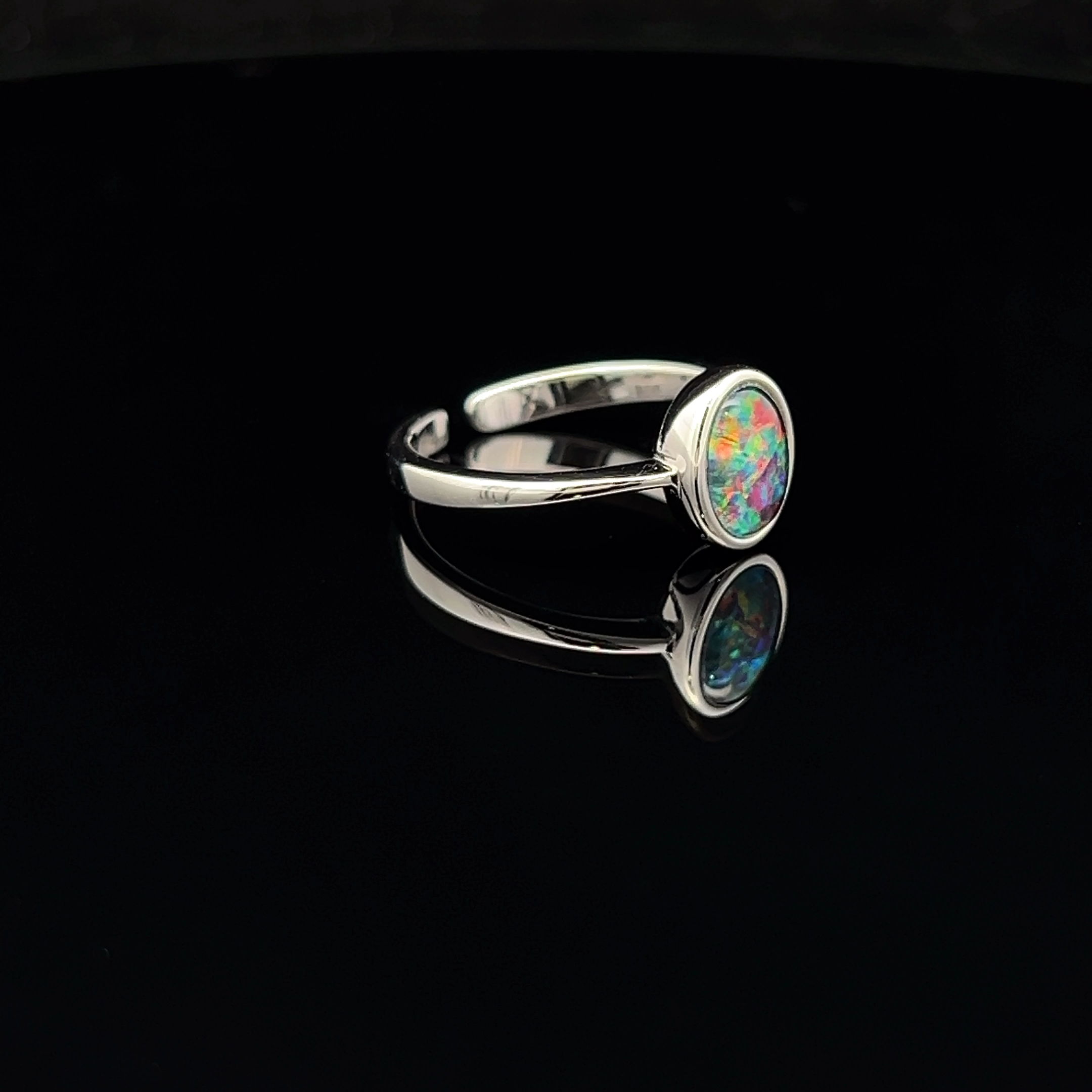 Sterling Silver Australian Gem Quality Triplet Opal Ring