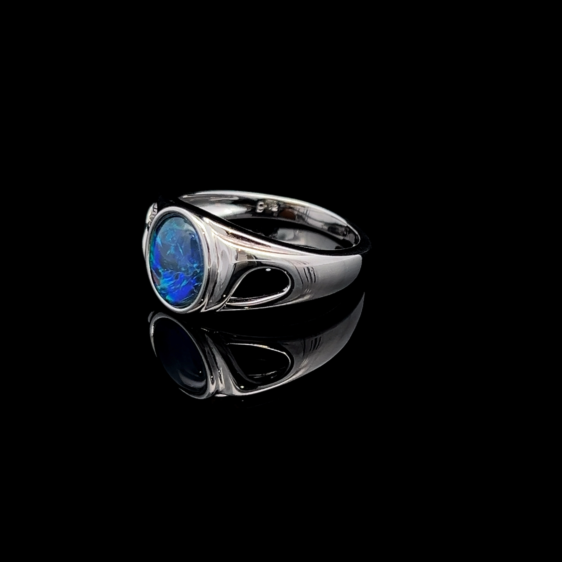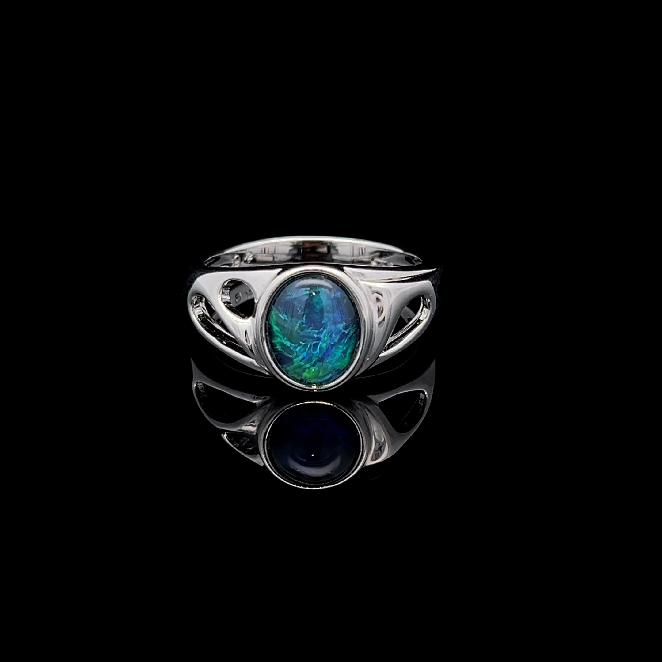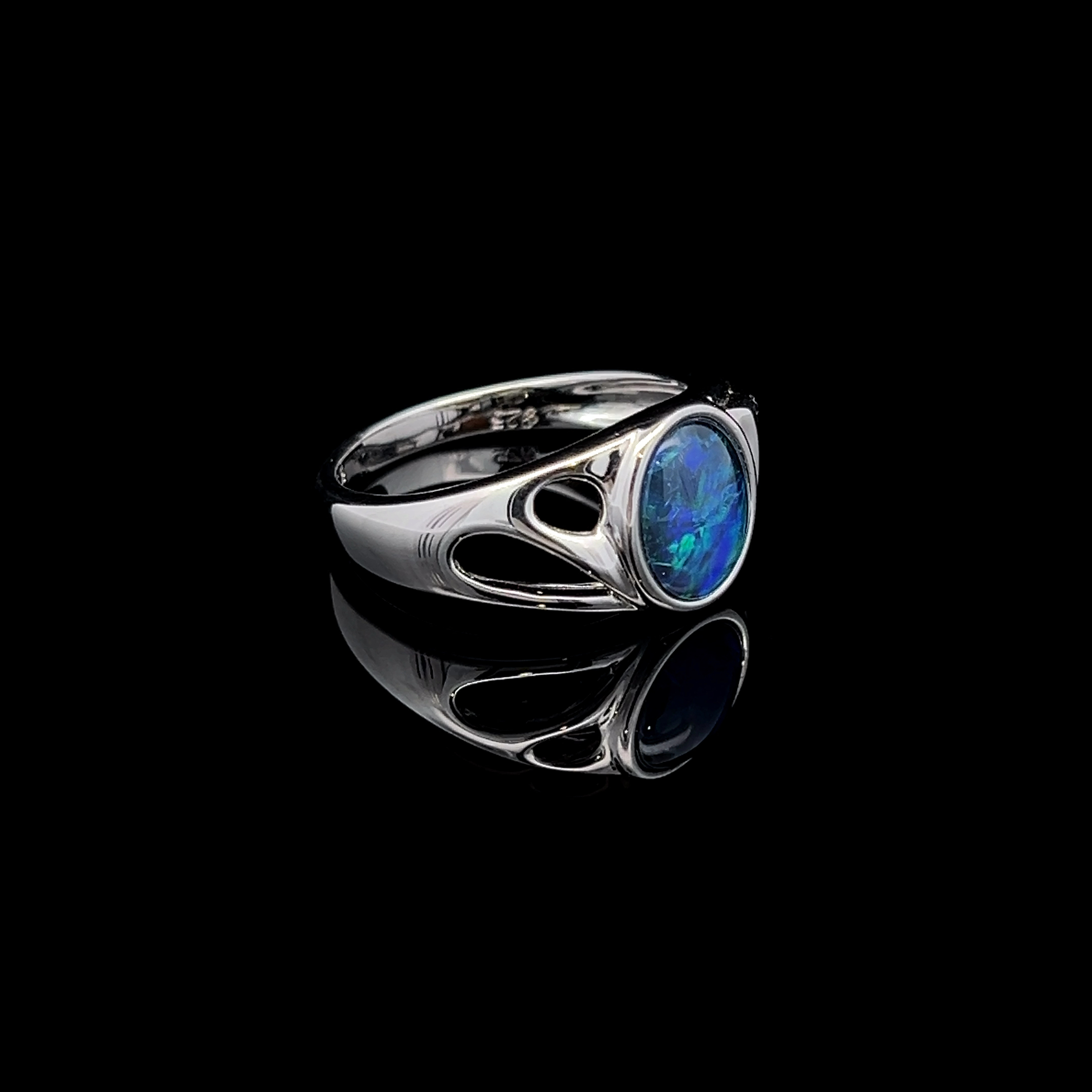 Oval Shaped Australian Triplet Opal Ring Set in a Decorative Sterling Silver Band