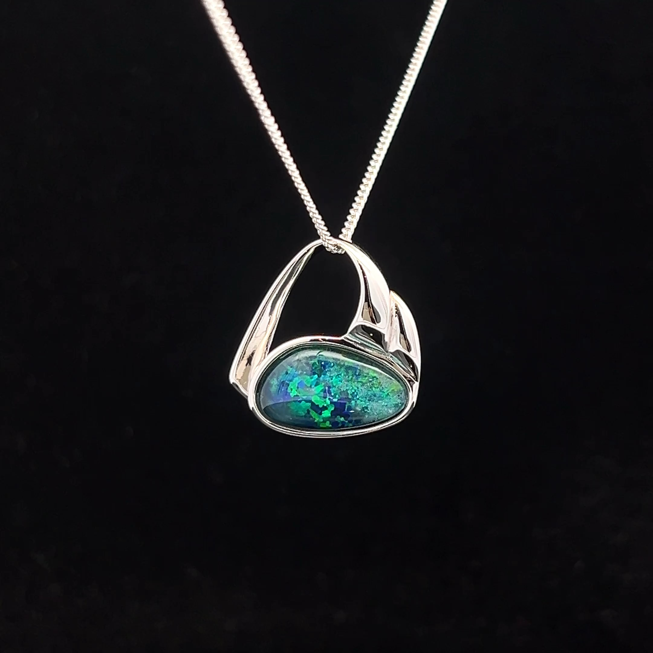 Australian Gem Quality Triplet Opal set in Sterling Silver Pendant