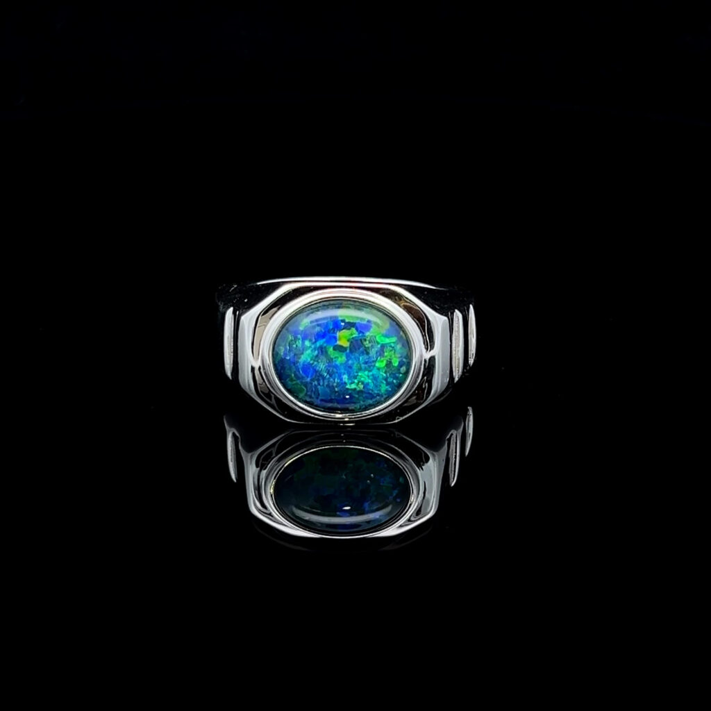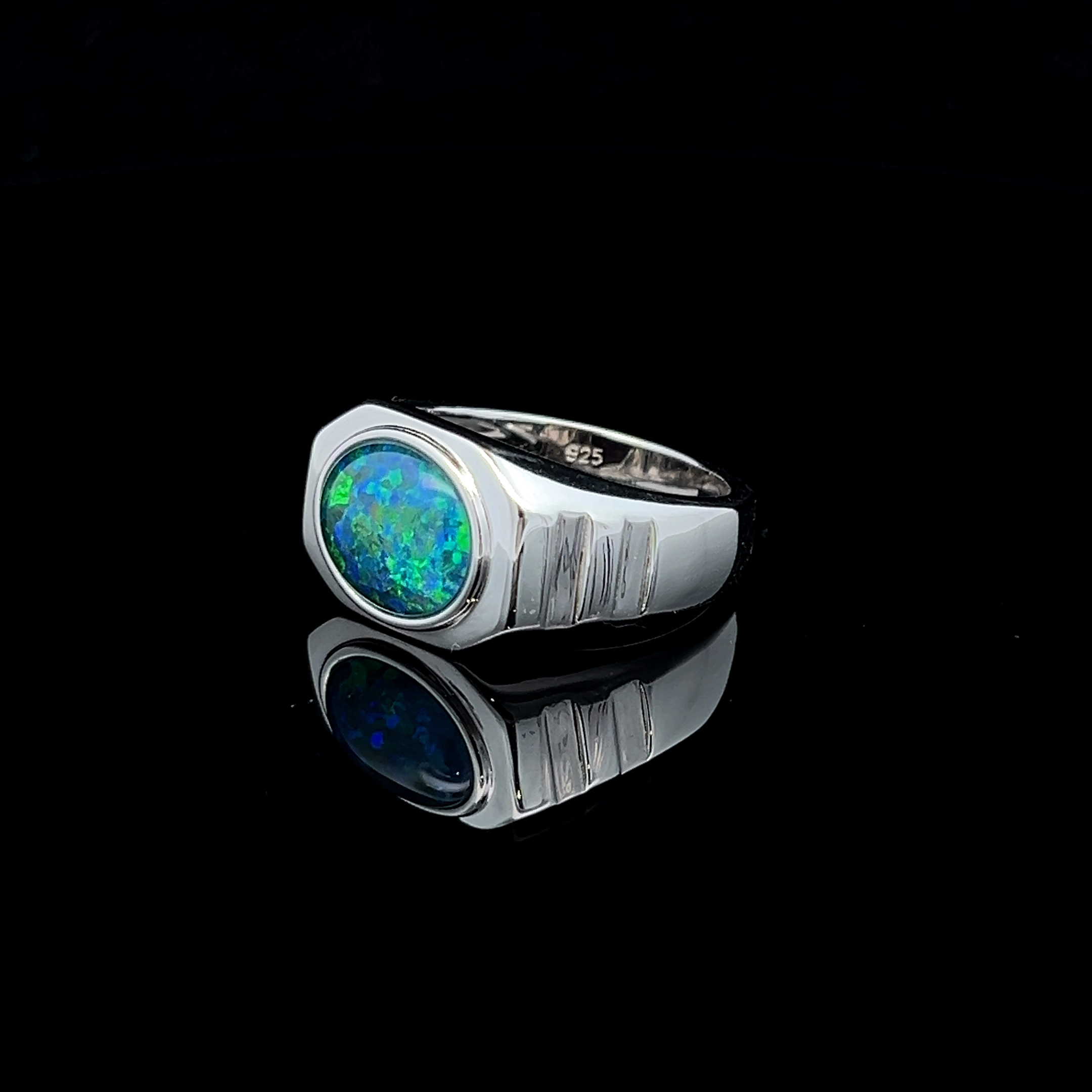 Sterling Silver Australian Gem Quality Triplet Opal Ring
