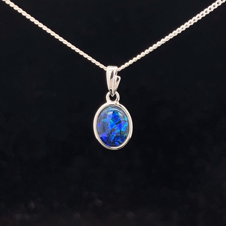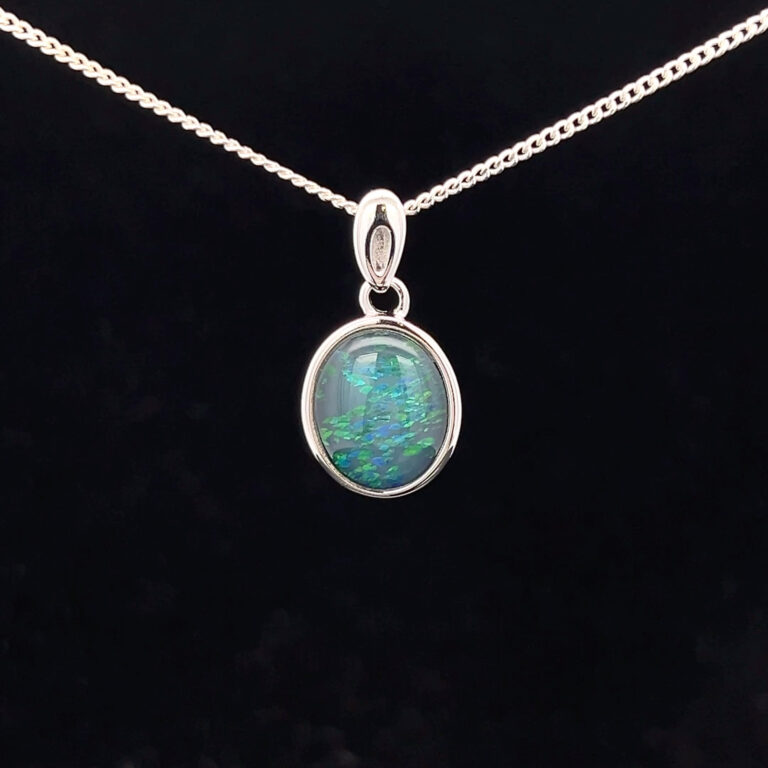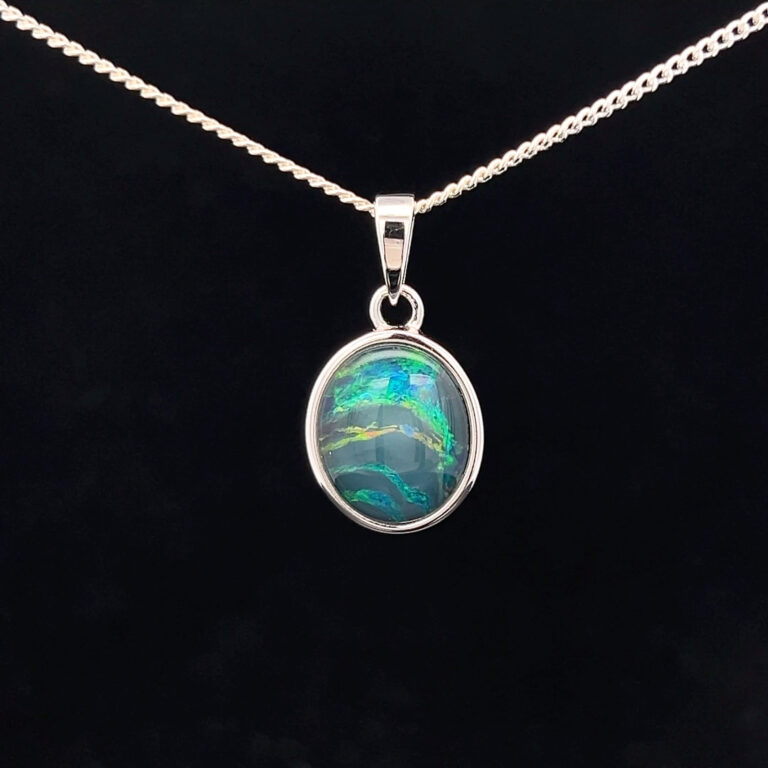 Triplet opals are fine slices of opal backed with a base, with an additional quartz cap on top of the slice, to emphasise the gem’s natural beauty. When creating our doublets and triplets, we only use gem-quality opals. Doublets and triplets are water-sensitive and should not be immersed.