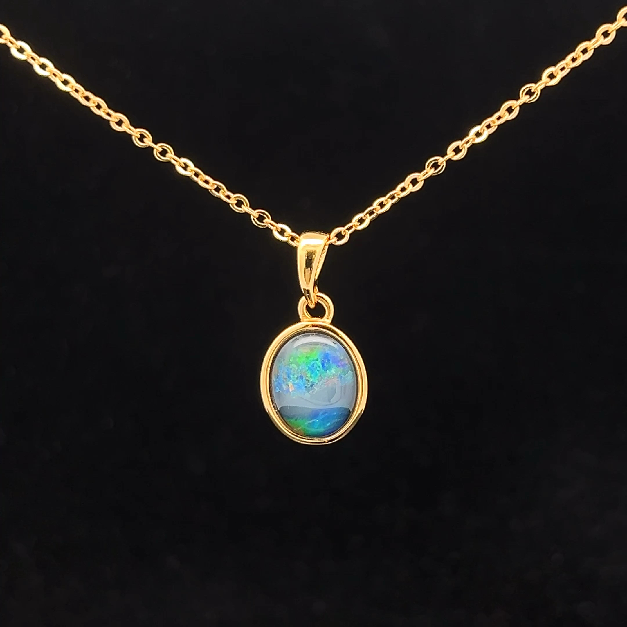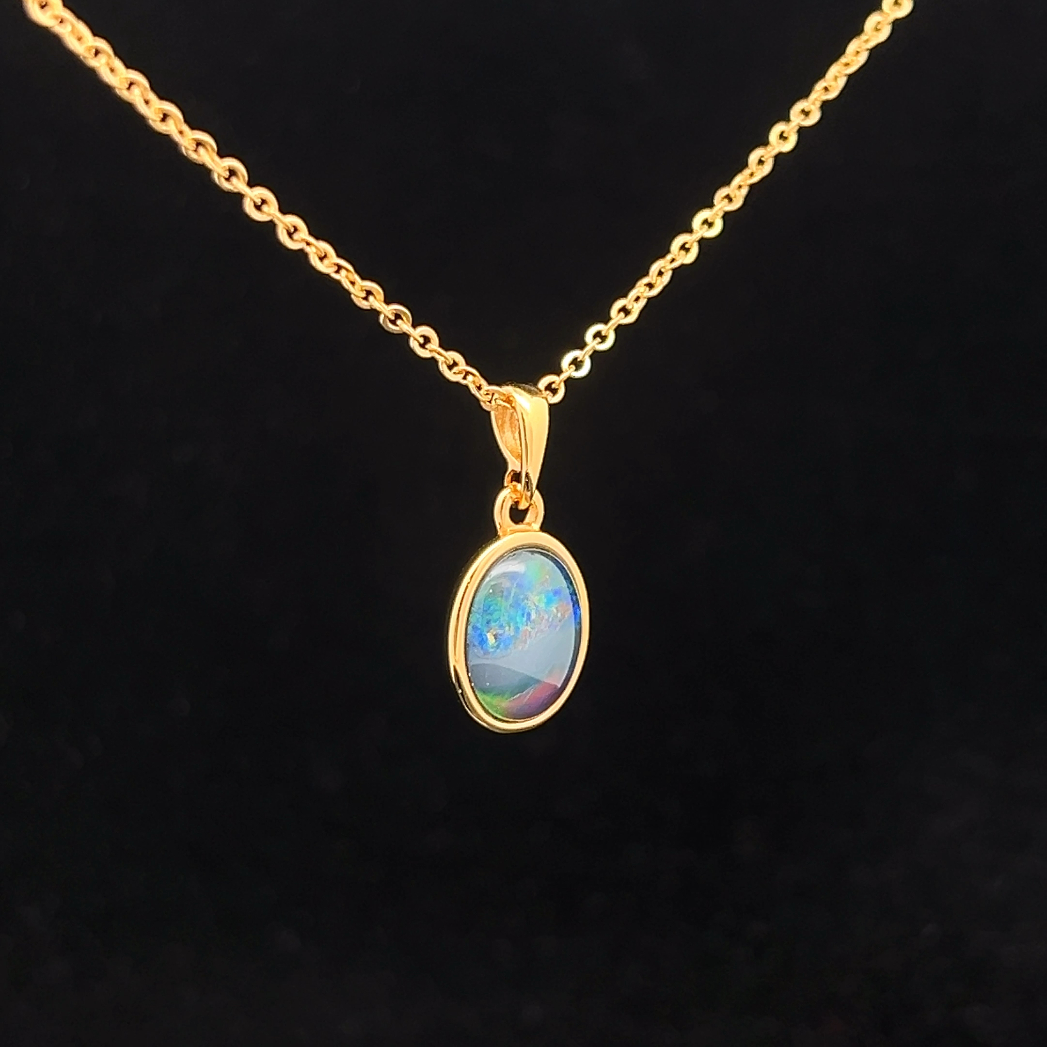 Australian Gem Quality Triplet Opal set in Gold Plated Sterling Silver Pendant